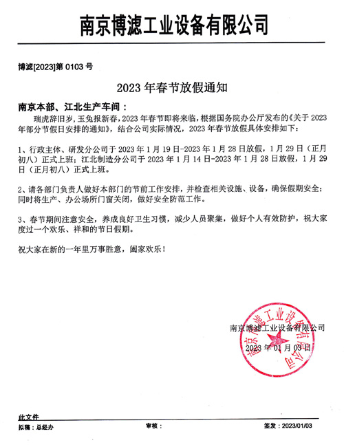 2023年度公司本部及生产车间春节放假安排通知